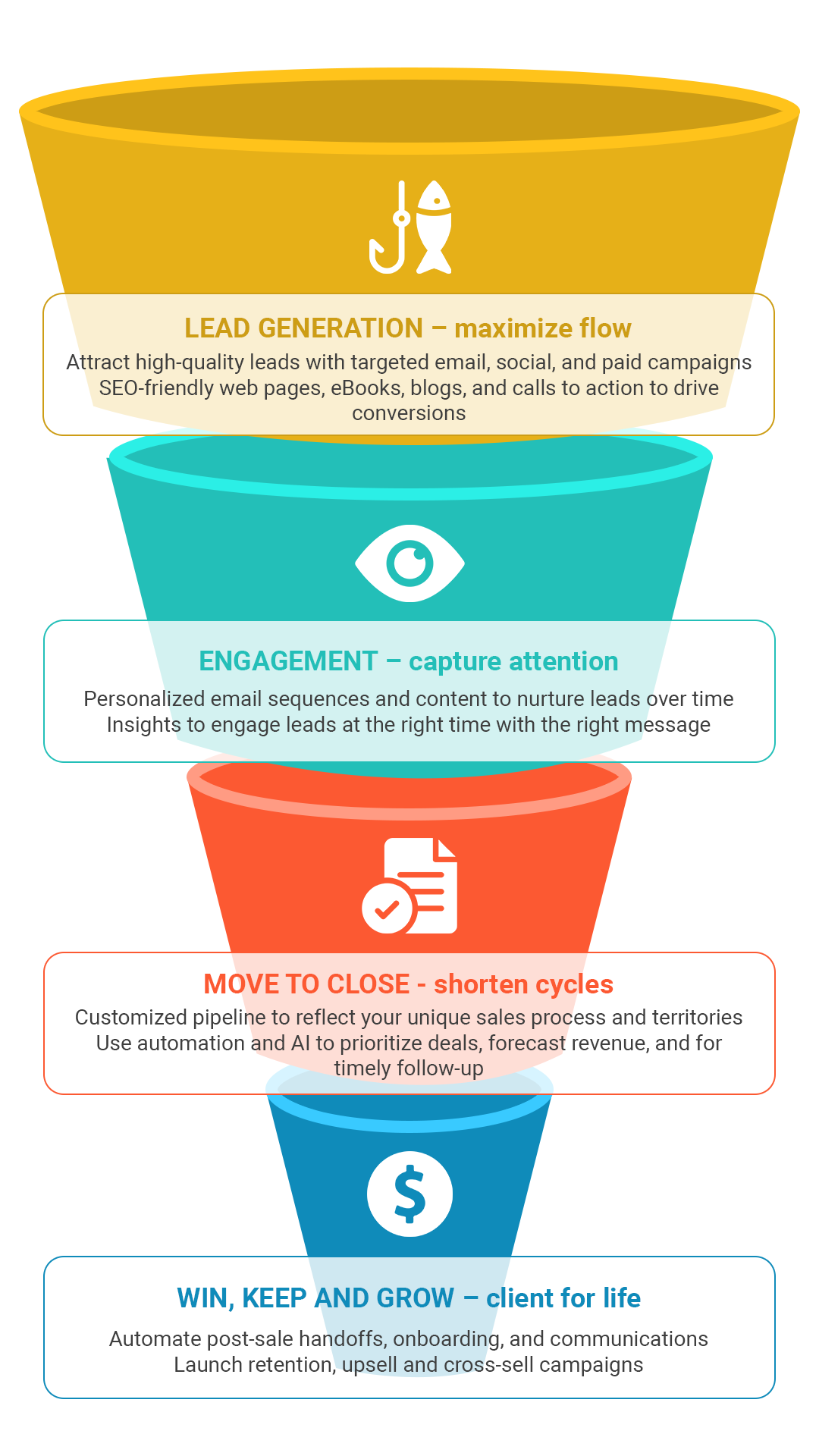 • Attract high-quality leads with targeted email, social, and paid campaigns